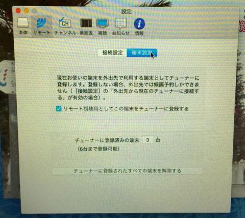 ・リモート視聴の登録は登録端末を表示できるようにしてほしい。
