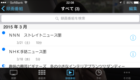 録画番組ボタンをタッチすると、HDDに録画した番組が一覧で出ます