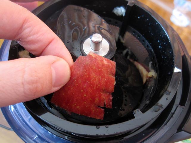 リンゴの皮、manya嫁さんの言うとおり、綺麗にカスになるときと、中に残っちゃうときと、半々と言う感じでしたねー。