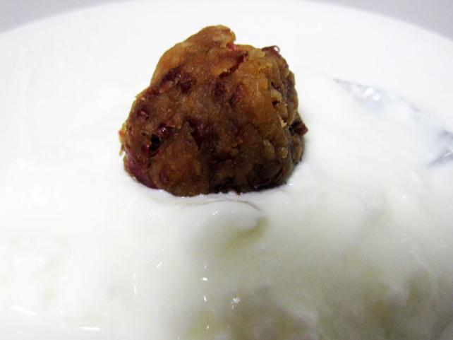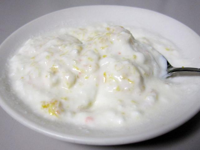 さらに、料理をせずに絞りかすを有効利用できないものかと考えて、手近なヨーグルトであえてみることにしました…。