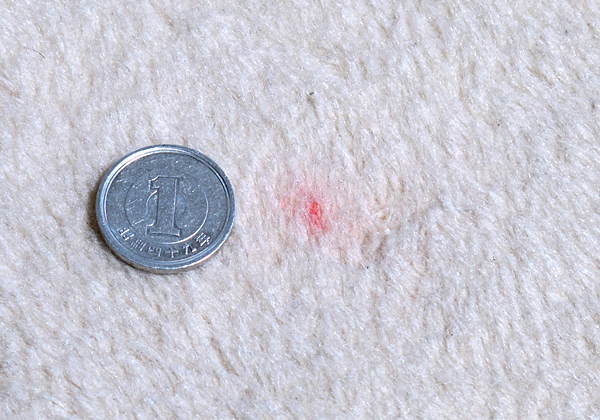 手についた朱肉で絨毯に触ってしまって付いたシミです。