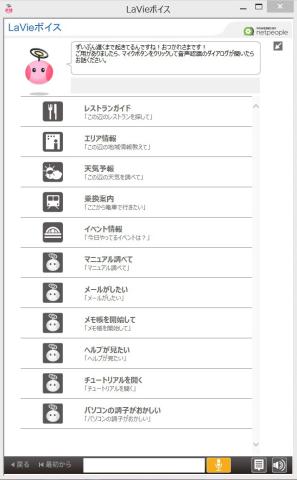 その他、メモ帳を起動したり、マニュアル・ヘルプ・チュートリアルなどを見たり、メールを開始すると言ったいくつかの動作が、声で制御することができます。