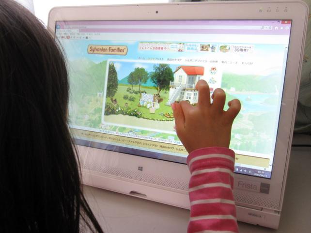 娘は、トラックボールでPCを操作することに慣れています(キーボードでは文字を打ったりはまだできません…)が、それでもやはりタッチパネルの方が押すだけなので、さらに操作がやりやすかったようです。