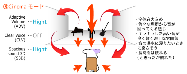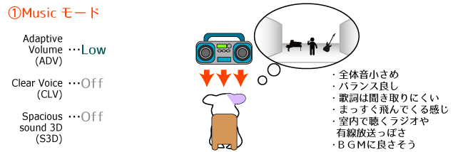 プリセットモードで聴いた音をイメージ図にしてみました。