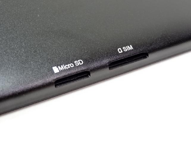 本体左側面には、MicroSDカードスロット、SIMカードスロットが装備されています。