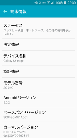 試すのは、Galaxy S6 edgeです。Android5.0.5ということで、Lolipopになります。