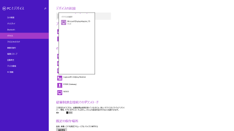 チャーム→デバイス→表示→ワイヤレスディスプレイの追加でアダプタを検索します。