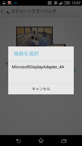 マイクロソフト ワイヤレスディスプレイアダプターが検出されたらそれをタップします。