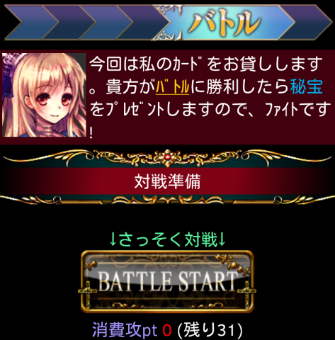 バトルで勝てば秘宝がもらえて、コンプするとレアアイテムも貰えるようですね。また、限定カードGETのチャンスもあるみたいです。