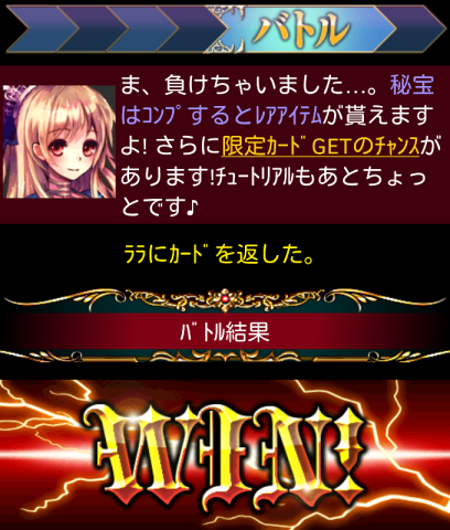 まぁ当然と言うかチュートリアル中なので勝利!ですね。