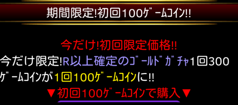 では、最初はゴールドガチャから!なんと最初の1回は100ゲームコインで引かせてくれるようです。