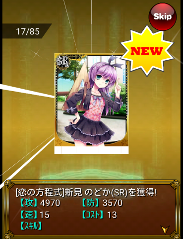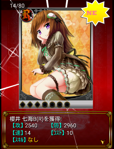 ガチャシステムは色々なタイプが存在していて、ノーマルガチャはNカード以上の入手が可能。しかも1日1回だけ無料で廻すことが出来るガチャ。無課金ガチャならノーマルガチャでしょう。SR以上のカードも手に入るようですよ。