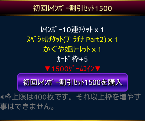 また、期間限定ガチャもあってレビューを書いている時点で、かぐや姫ルーレットが出現していました。