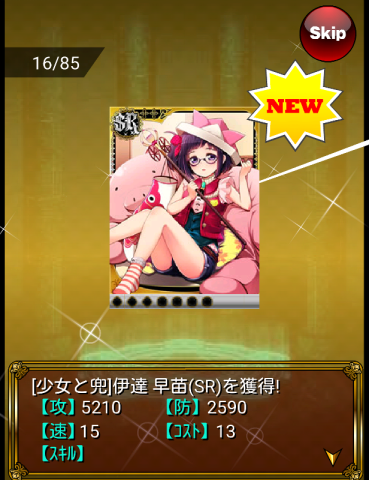10回中3回がSRでした。SRより上のカードが出なかったので引き弱かもしれません・・・