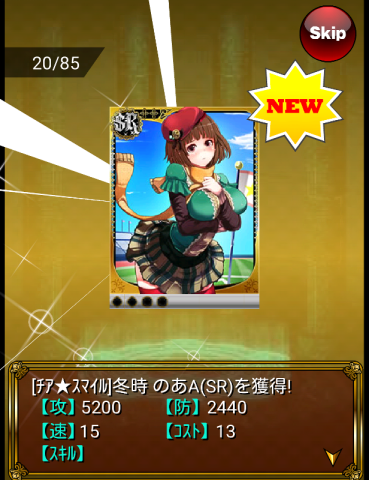 って事は・・・最初にもらったR+の覚醒でもR++、そしてチュートリアル終了でもらったSR。ランク的にはあまり強くないカードですが、最初のうちは戦えそうな感じですか?