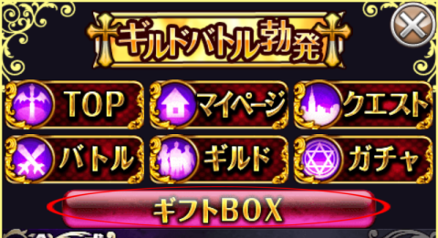 こんなところに、ありました。ログイン時にもらえるボーナスも、ギフトBOXから受け取るようで1回も受取れてなかったので結構な数のアイテムがたまってました。( ゚∀゚)ゴメンネ!