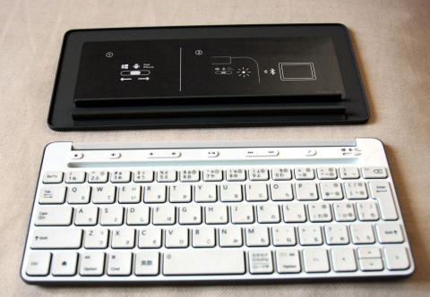 タブレット部分は10インチほどあり、iPadとは違って本キーボードとぴったり一致とはいきませんが、なかなかのフィット感です。このASUSは、Windows8ならぬRTを積んでいるため若干の心配をしましたが、接続も例の6桁数字を入力するだけであっさり認識しました。考えてみれば本キーボードはMS製。仕様にもあり、当たり前といえば当たり前です。