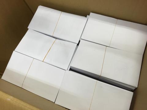 例年、夏と冬にそれぞれ4000枚弱の封筒を手作業で封かんしています。いつもスティック糊で手をベタベタガビガビにして行っていますが、「秒速封かんのり」で試してみたいと思います。
