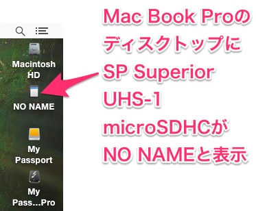 Silicon Power SDHC UHS-1はNO NAMEとしてディスクトップにマウントされています