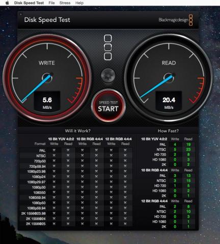 Silicon Power 32GB SDHCクラス10の読み書きスピードをテストするのには、BlackmagicdesiginのDisk Speed Testを使用