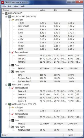 2011/7/21 FFXIVを実際にプレイしている時の各温度を追記