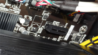 HDDは取り出しにくいですが、丈夫にはSSDを取り付けるための専用スペースがあります。そして、MBにはPCI-E 1xスロットが1つあります。本当は2つついていますが、1つはグラフィックボードに隠されてしまっています。