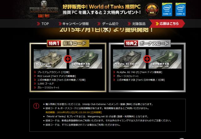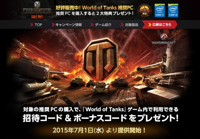 Intel様のWoT推奨パソコン購入キャンペーンサイトはこちら