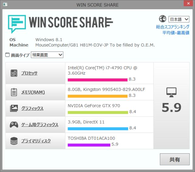 Graphics Scoreが大きく伸びるのも当然ですね。今までPCI-E2.0のMBにGTX660のグラボを挿して使ってましたからね!それがPCI-E3.0にGTX970ですから、性能は雲泥の差といっても過言ではありません。