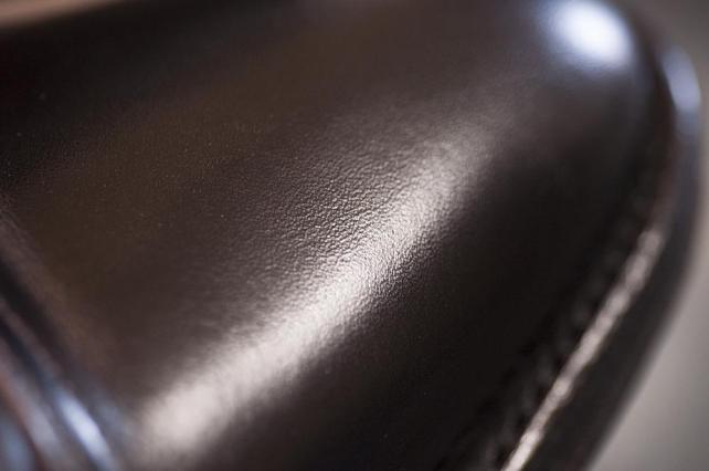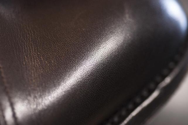 ブートブラックハイシャインの凄いところは、カーフのきめの細かさを保ったまま、ちょうど良い感じの光沢感が得られるところである。