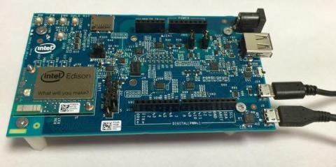 Intel EdisonはIoT デバイス向けのシングルボードコンピュータです。大きさは SDカードほどの大きさ。デュアルコアのIntel ATOM 500MHz、1GB のメモリを内蔵しています。