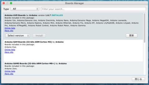 一番上の Arduino AVR Board by Arduino はデフォルトでインストール