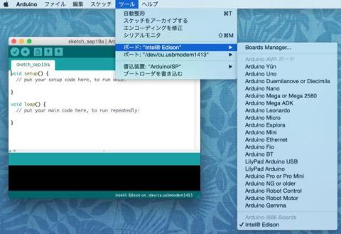 追加で設定する必要があるのはIntel i686 Boards by Intelです。これを追加しないとボード選択でedisonが選べません。