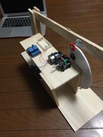 とりあえず、形にしないといけないので、かなり雑で危険な方法ですが、暫定案として電動ドリルを動力に用います。