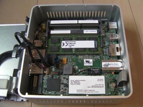 組み立てと言っても、確認が必要な配線等はすべて終わっているので、メモリとストレージを挿しこんで固定するだけです。