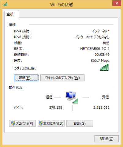 866.7 Mbpsで接続できました。無線LANルーターが近いのもあってとても安定していました。