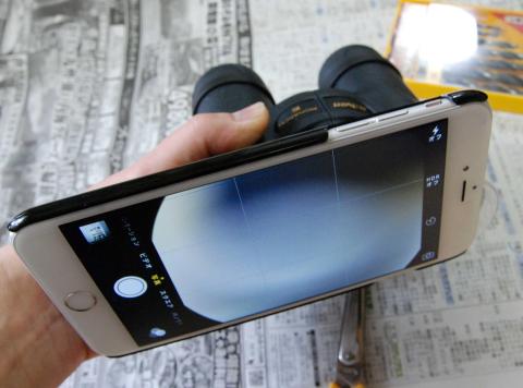 上がi-Phone6+で、下が MONARCH 7 8X30 +手製アダプター+i-Phone6+です