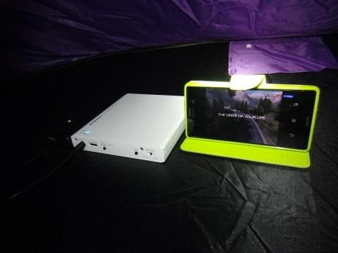 などのmicroUSB端子を使いモバイルバッテリーから電源供給