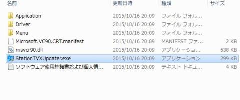 で、解凍したファイルの中のStationTVXUpdater.exe を実行します。