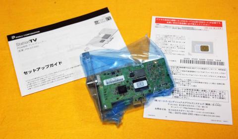 PCI Express接続の本体、簡単な説明冊子、ミニB-CASカード、背面のロープロファイル用ブラケットです