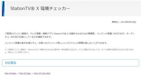 のリンク先に StationTV(R) X 環境チェッカーがあります