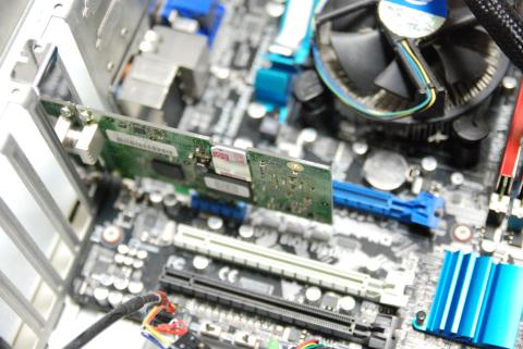 差し終わったら、本体を開けて差し込みます PCI-Express×1に刺し込みますが、PCI-Express×16の差し込み口でも問題ありません(必ず電源を抜きましょう・簡単に壊れます)