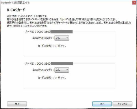 話を元に戻します、保存先が決まったらB-CASカードのチェックです