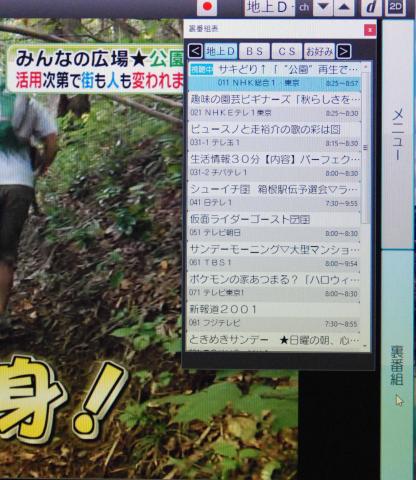 メニューにも裏番組というタブはあり、番組の名前も出ますが、クリックしても裏番組が同時に見ることが出来るというわけではありません
