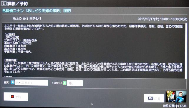 夜中の番組を予約したんで・・・朝起きたら確認してみました