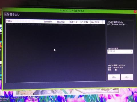 DVD-Rを挿入したので、ひょっとして容量足りない?と思いつつも、確認できる記載が無かったので、そのまま「はい」を選択してみます。(書き出そうとしている番組は二時間)