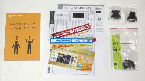 付属のキーボードとマウスは価格を抑えたシンプルなモデルが付属しています。実用上は問題ありませんがマウスはワイヤレスのほうが使いやすいので、好みで他社製品を購入することをお勧めします。