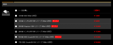 BTOメニューのIntel SSD 535 240GBを用意したいところですが、今回はIntel製のSSD 330 240GBを用意しました。