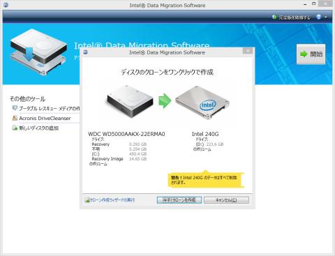 インストールが終わったらIntel Data Migration Software起動して”開始”をクリック。