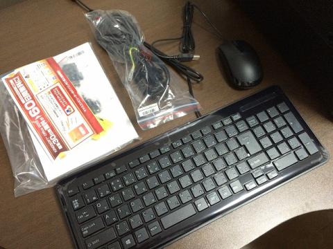 中はがっちり梱包されております。本体だけだと思いましたが、マウスとキーボードが附属されていました。取り出し中身をチェックしてみます。