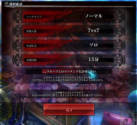 これを入れずに完了してしまうとグループVSグループの対戦に入ってしまうので、仲間との連携がとりにくく初心者だと負けやすいです。